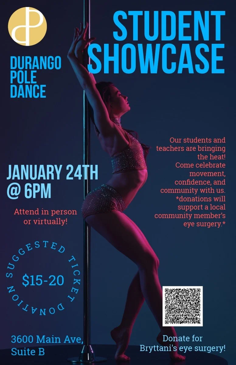 At Durango Pole Dance, we believe pole dance is for everyone. Our mission is to foster a supportive and inclusive community where individuals of all backgrounds, ages, and skill levels can embrace their strength, explore their creativity, and find joy in movement. We are committed to providing safe, challenging, and inspiring classes that empower our students to reach their full potential, both on and off the pole. We are building a community where self expression takes many shapes .